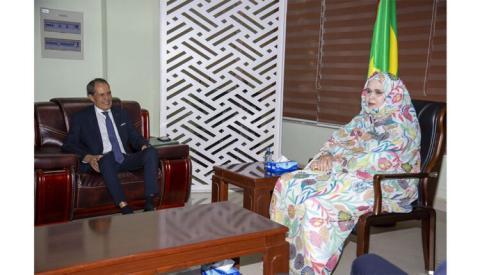 أجرت وزيرة التجارة والسياحة، زينب بنت أحمدناه، اليوم الخميس بمكتبها في نواكشوط، مباحثات مع سفير المملكة المغربية المعتمد لدى موريتانيا، السفير حميد شبار.