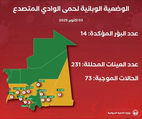 أعلنت وزارة التنمية الحيوانية البارحة، تسجيل بؤرتين جديدتين لوباء حمى الوادي المتصدع بين المواشي، في مقاطعتي بوغي والطينطان.