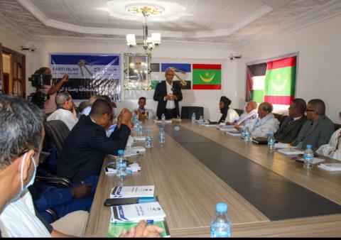 وبعد ذلك افتتحت جلسة نقاش أدارها رئيس الحزب مع الضيوف تكلم فيها كل من الوزير السابق صو أمادو دمبا والوزير السابق محمد فال ولد بلال والوزير السابق سيدي ولد أحمد دية والأستاذ إسلم ولد المحجوب والنائب في الجمعية الوطنية الخليل ولد النحوي ونقيب الصحفيين الموريتانيين أحمد طالب ولد المعلوم